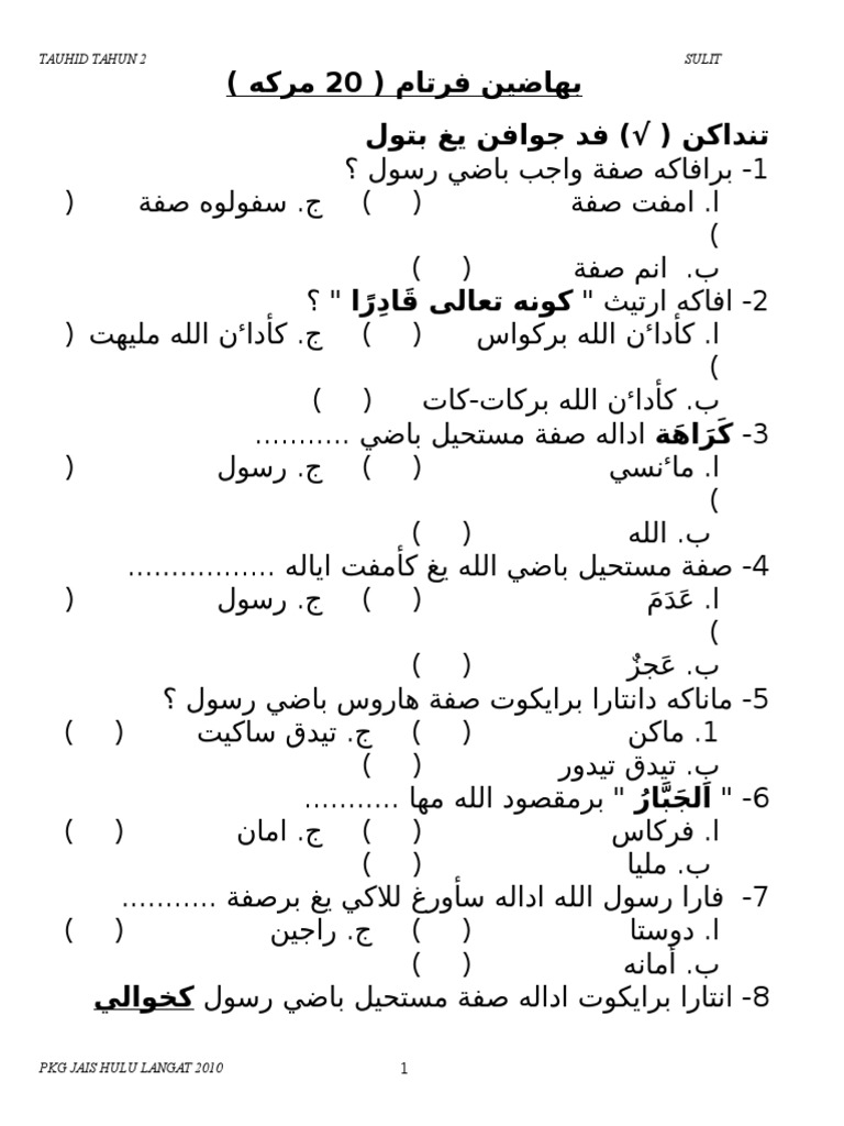 Contoh Soalan Peperiksaan Akhir Tahun 2 Sirah